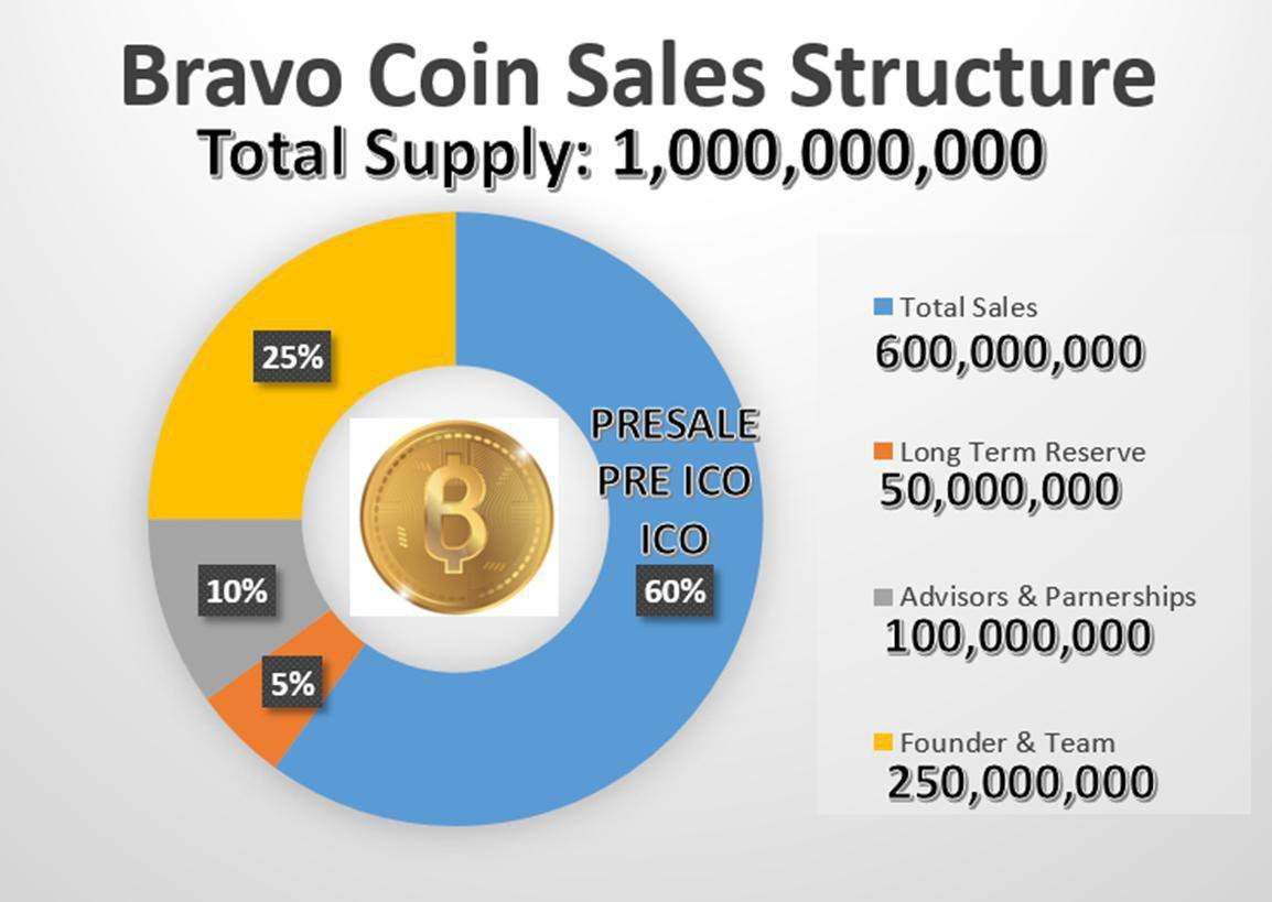 The Bravo tokens on sale during the ICO are ERC20 tokens, BVO-ERC. After the ICO there will be a token swap where BVO-ERC tokens will be exchanged for BVO tokens, and then burned. There will be a total supply of 1 billion BVO tokens. The BVO token will be priced at $0.10 for the public ICO sale.