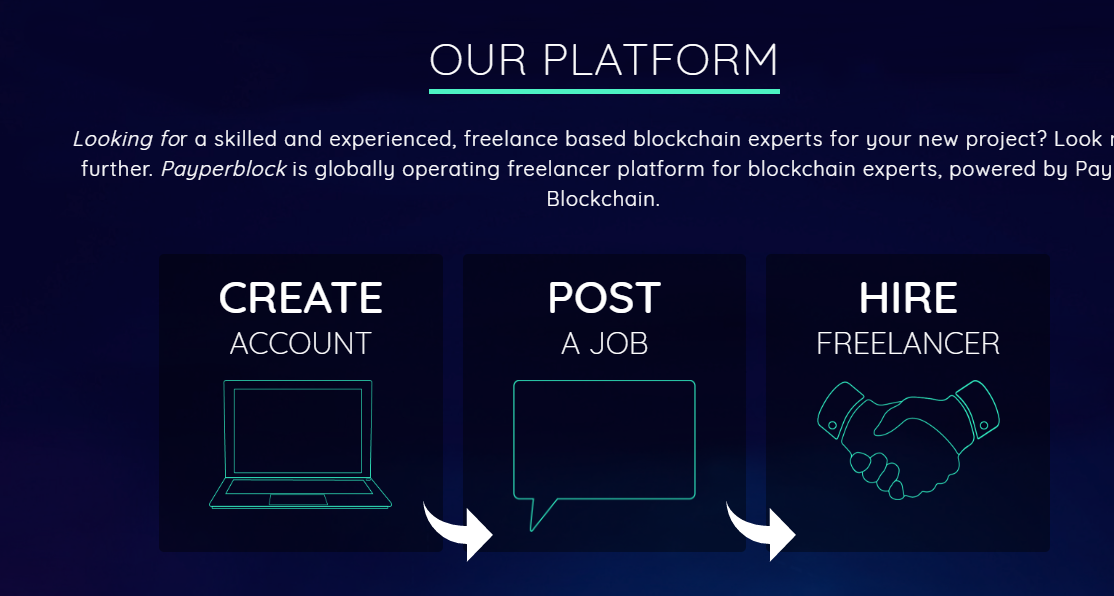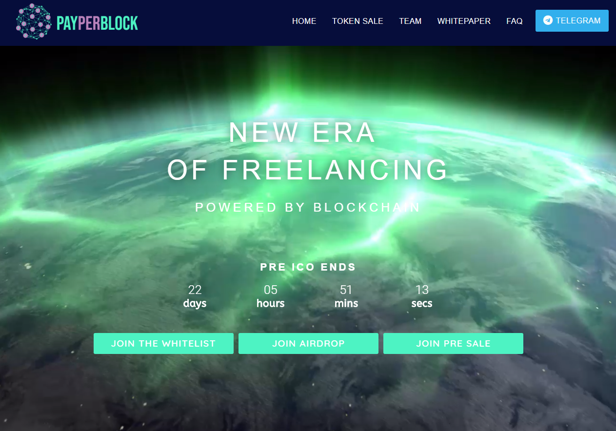 Payperblock - Payperblock is a platform based on blocks freelancer, which is owned and operated by Pajperblokk LTD and is used to connect professionals and jobs. The main client pool of the company includes freelancers who are experts and organizations having a chain. The company's headquarters are located in Oulu, Finland, as the city is rich in talents and resources for the technology industry. Pajperblokk works on the same principles of functionality as the popular Ethereum. Instead of relying on a centralized management system, PAJPERBLOKK uses a distributed network of token holders (ICO investors) in the company. Freelance is one of the fastest growing industries in the world, and the industry already costs over $1 500 000 000 000 in revenue per year. More than 77 000 000 people on a global scale define their basic employment as freelance work.