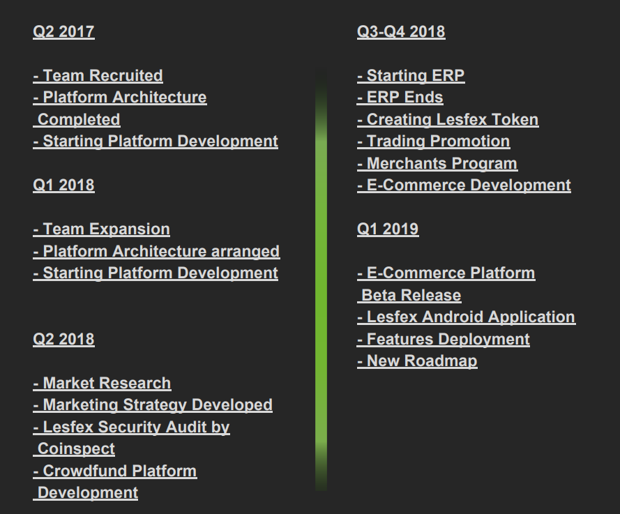 The Lesfex Exchange roadmap is as below: